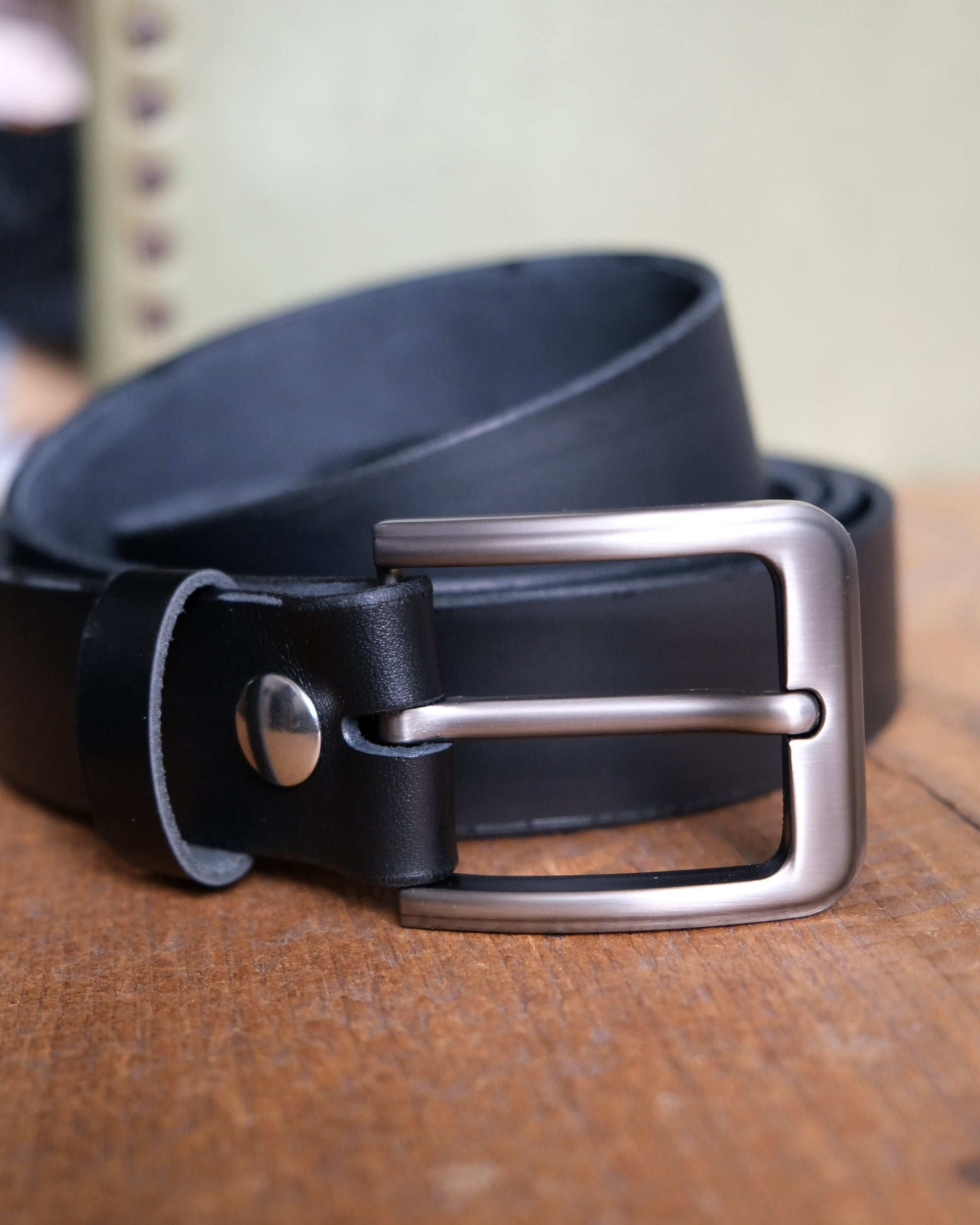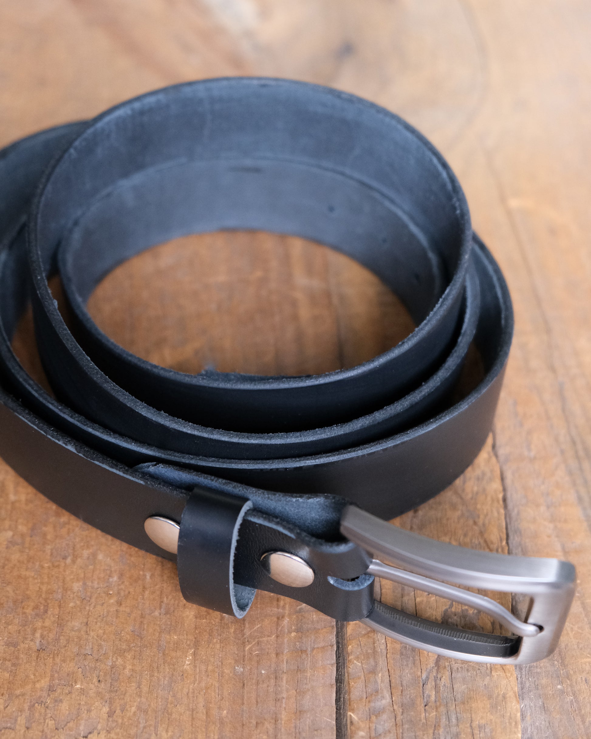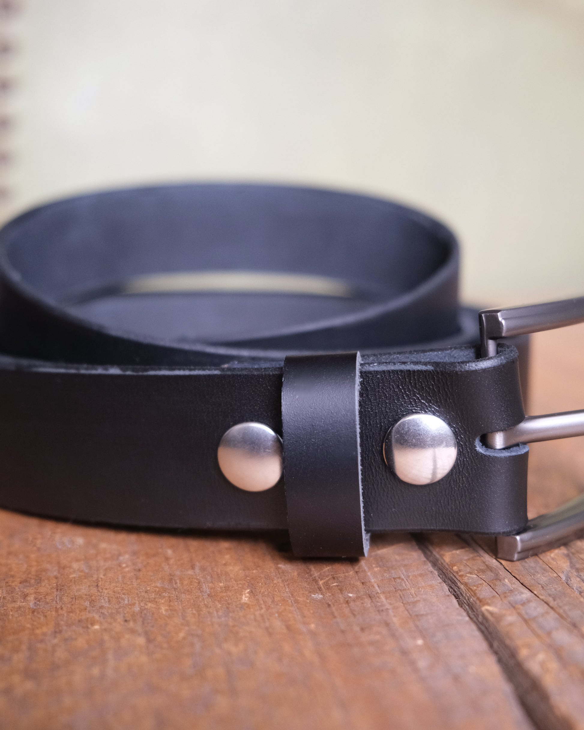 Black Leather Snap Belt - 1.5" Wide