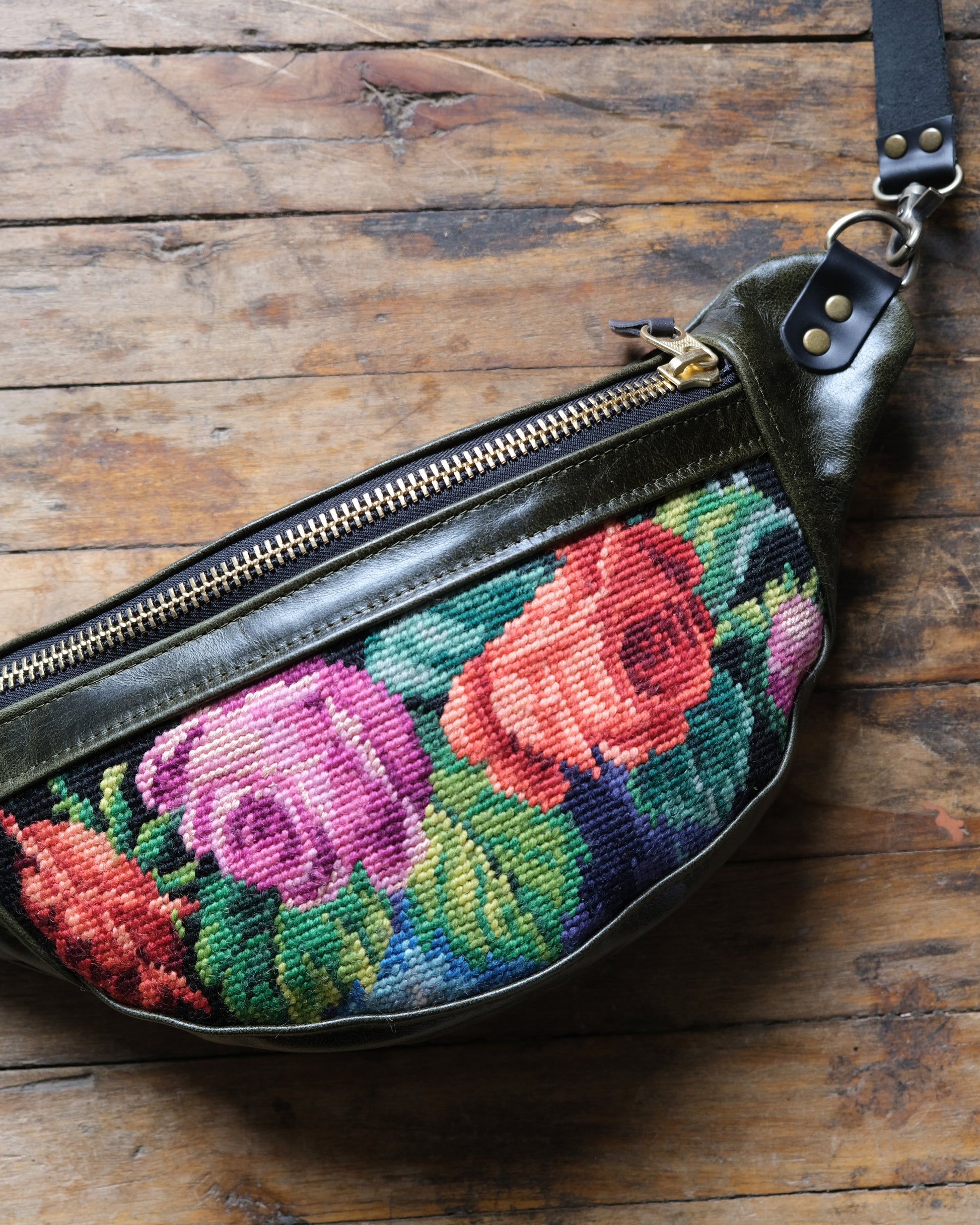 The main zippered compartment has an interior slip pocket, so you can easily store your essentials such as a phone, passport, ID, and credit cards. Made out of an actual quilt, this bag is one of a kind.