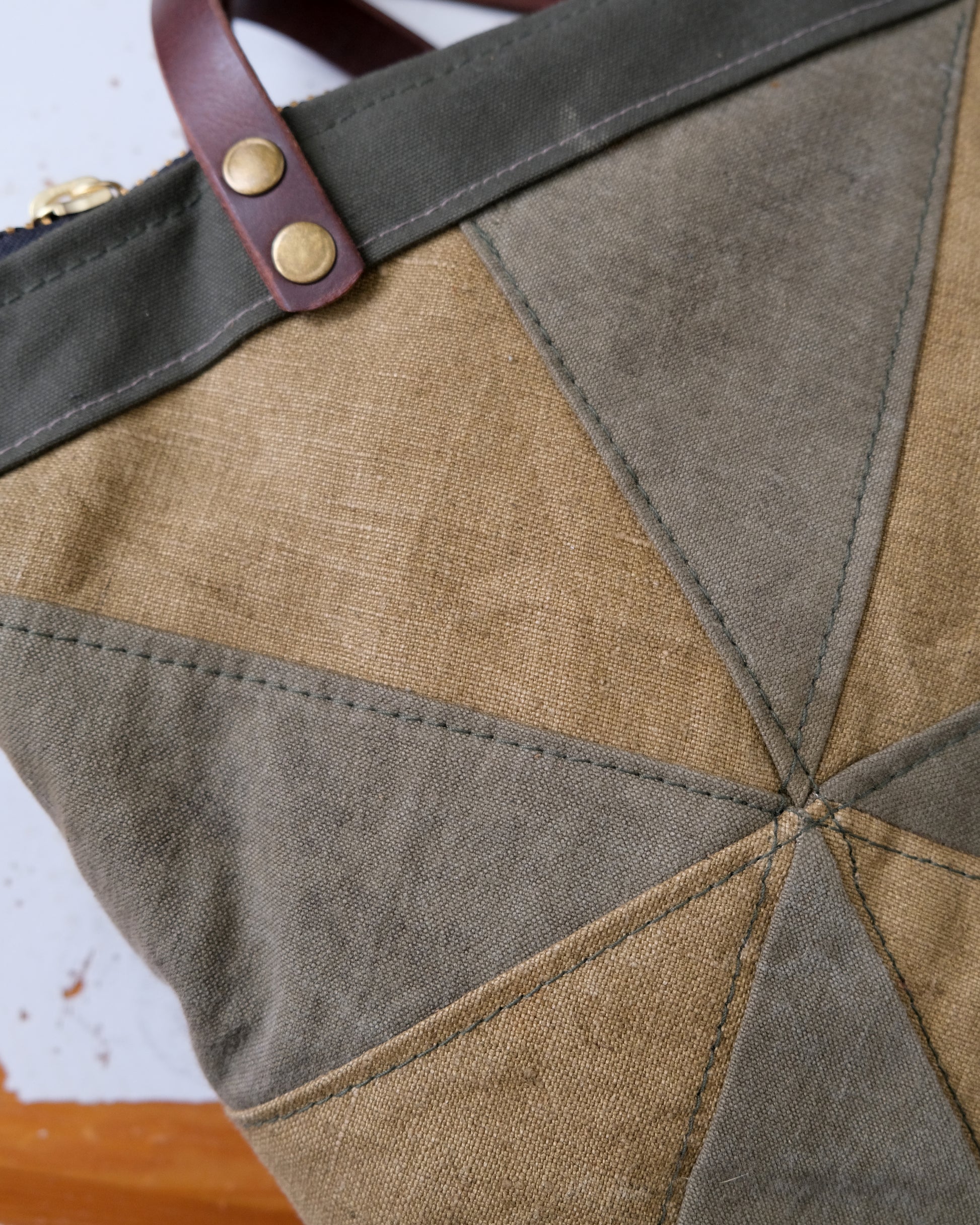 Celebrate sustainable style with this exceptional Heritage Tote, built from authentic antique French military linen and thick surplus canvas arranged in striking quilt-block formations. The thoughtfully assembled patchwork of vintage surplus textiles creates a truly singular piece that reflects your appreciation for quality craftsmanship and timeless design. A convenient double exterior pocket keeps essentials within easy reach, while the roomy interior supports all your daily adventures. Beyond its undeniable visual appeal, this hardworking bag delivers the reliability and capacity you need for real-world use.