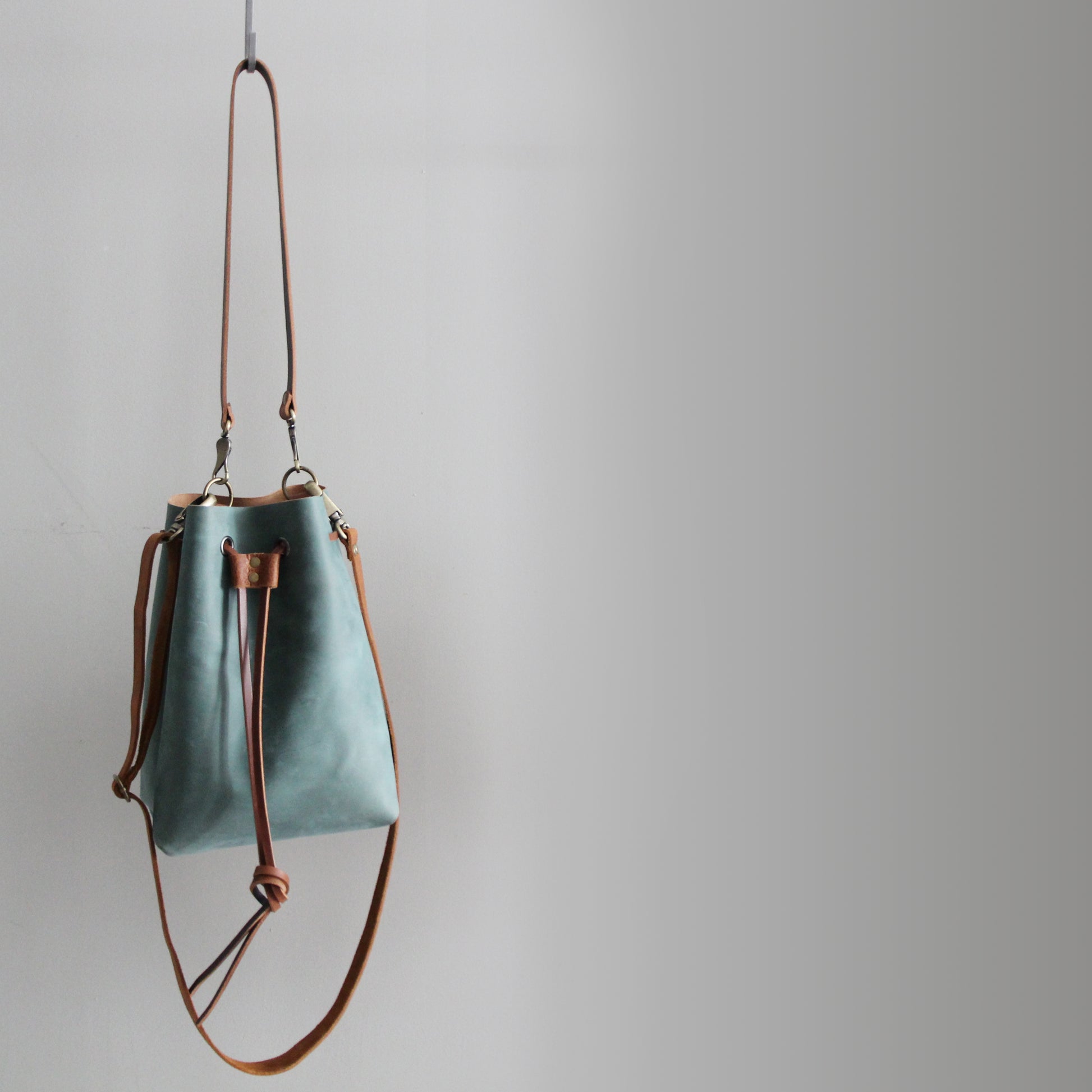 A striking soft teal and cognac leather bucket bag that will turn heads and invoke envy! The two shades pair beautifully, and are perfect for all seasons. Dress it up or dress it down, this bucket bag will be your go-to bag every day.