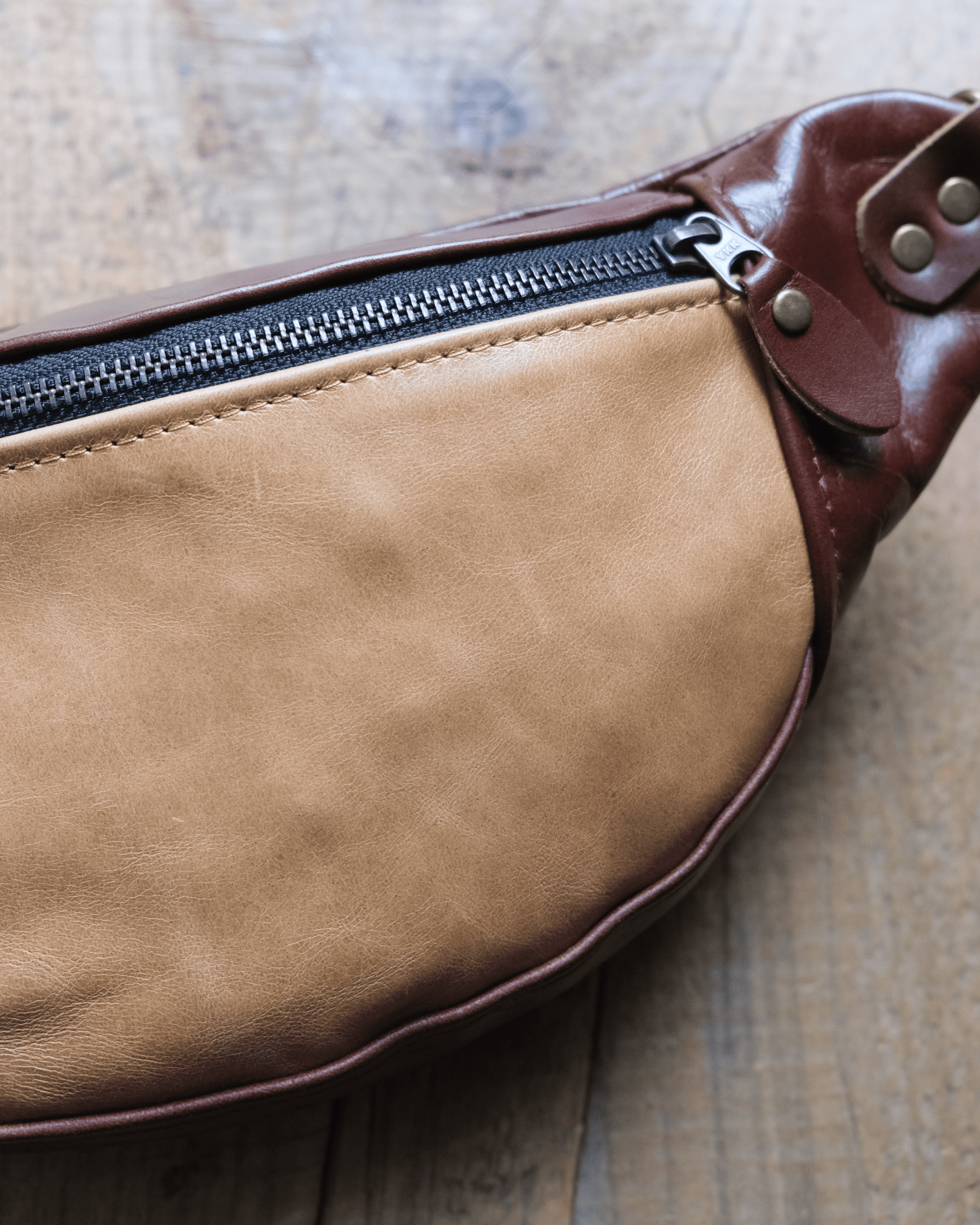 The leather strap can be adjusted to wear on your shoulder, waist, or across your body.