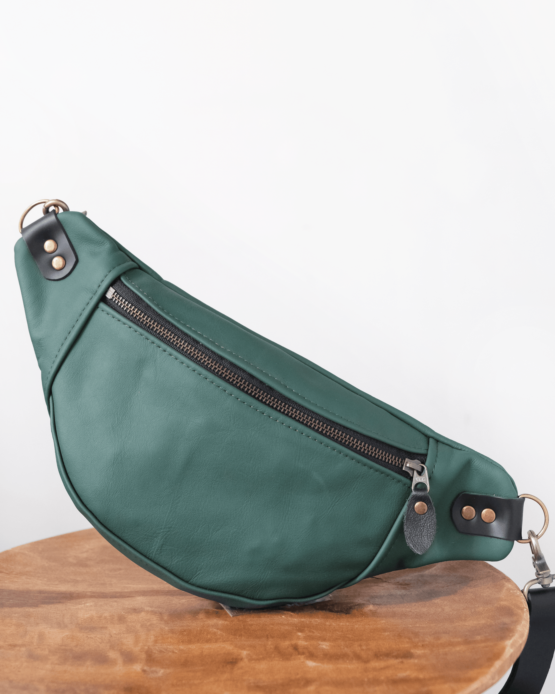 The leather strap can be adjusted to wear on your shoulder, waist, or across your body.
