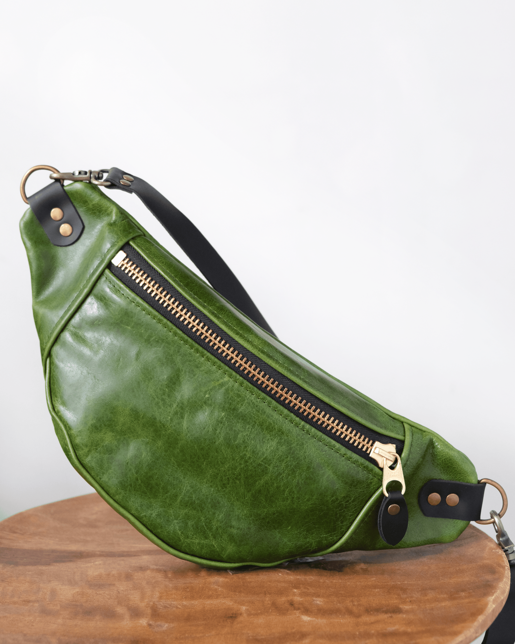 The leather strap can be adjusted to wear on your shoulder, waist, or across your body.