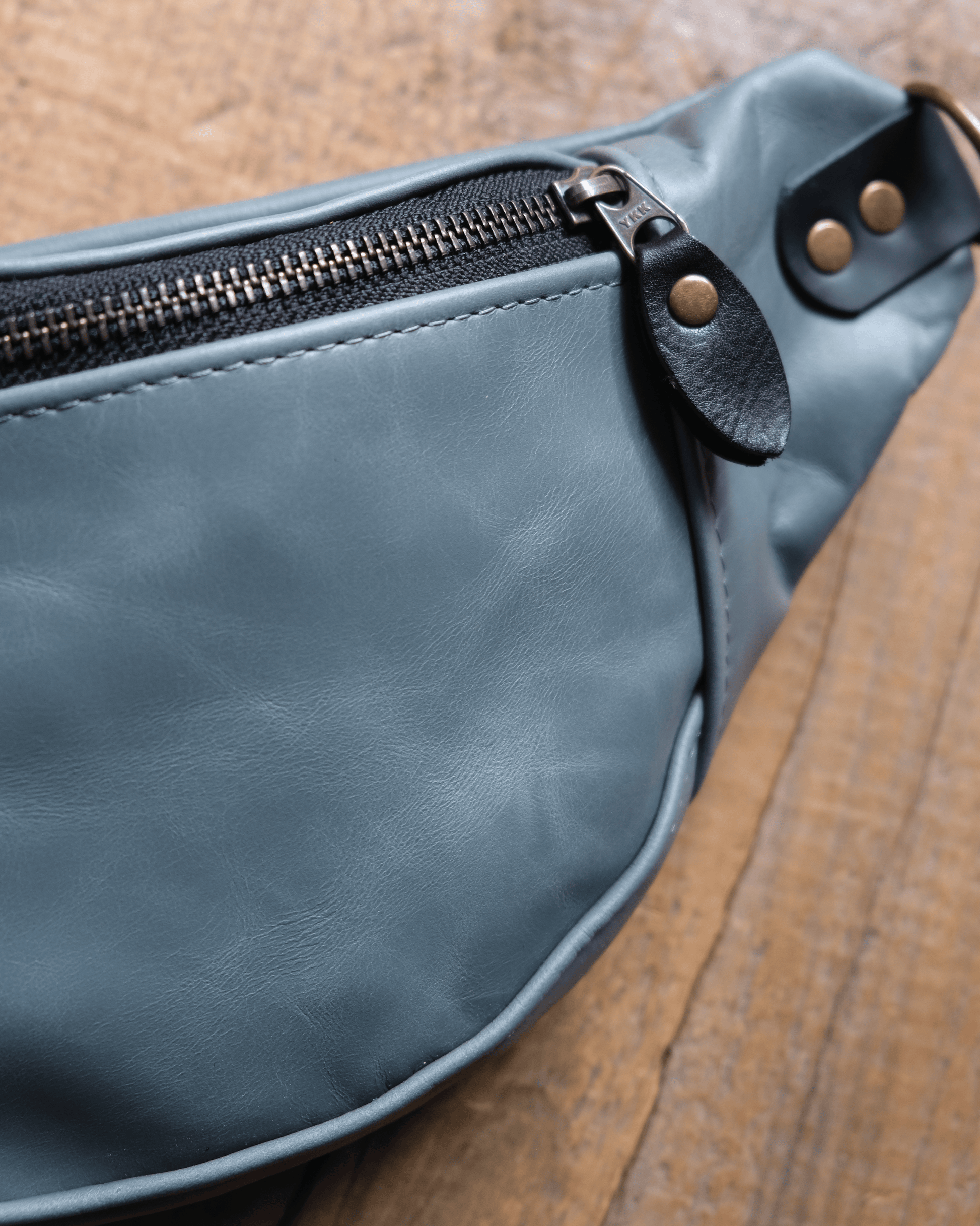 The leather strap can be adjusted to wear on your shoulder, waist, or across your body.