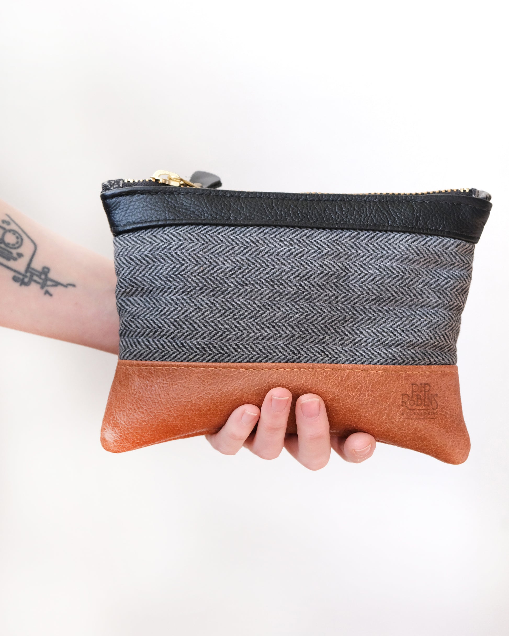 Tweed and Cognac Wristlet
